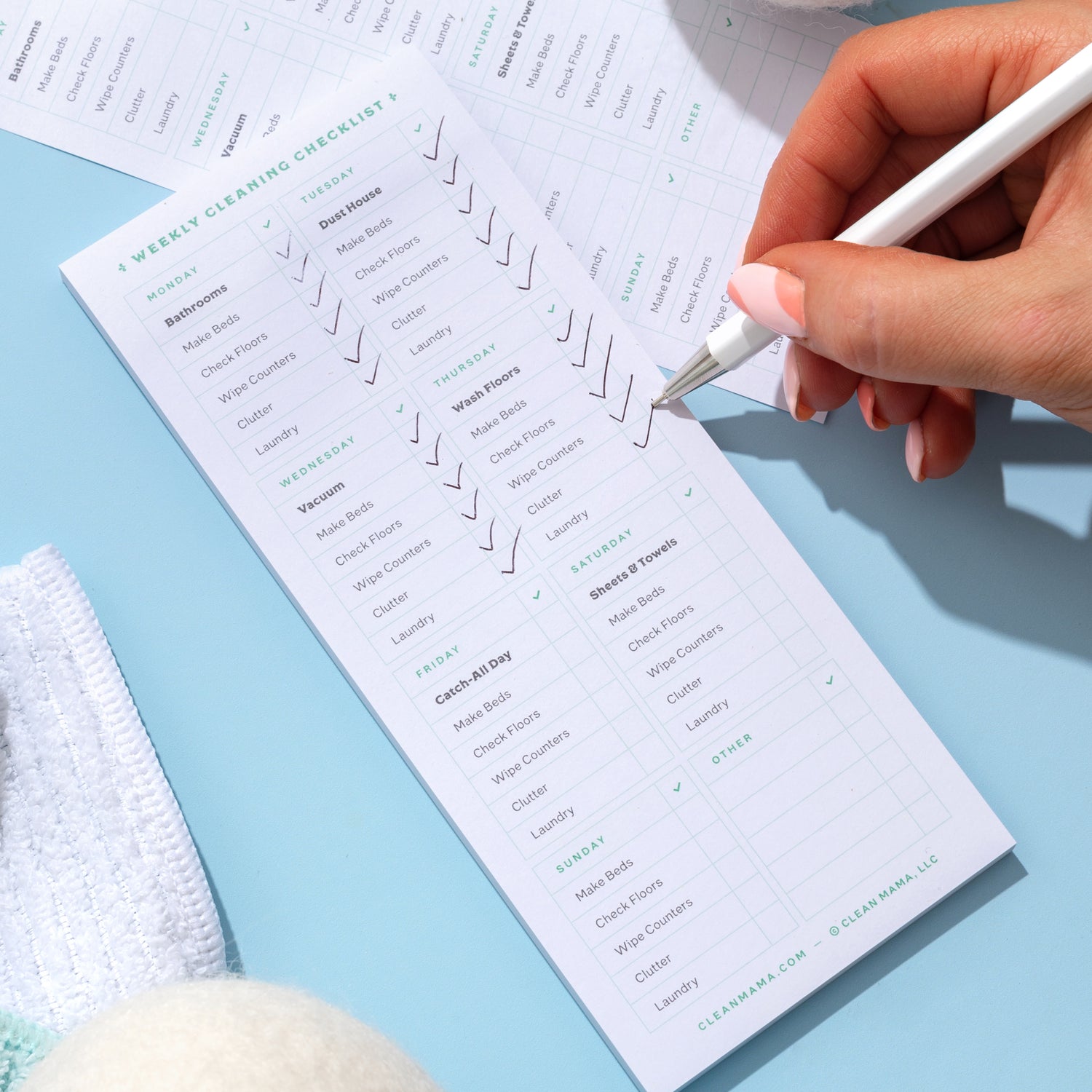 Get a free Weekly Cleaning Routine Sticky Notepad with any purchase over $75