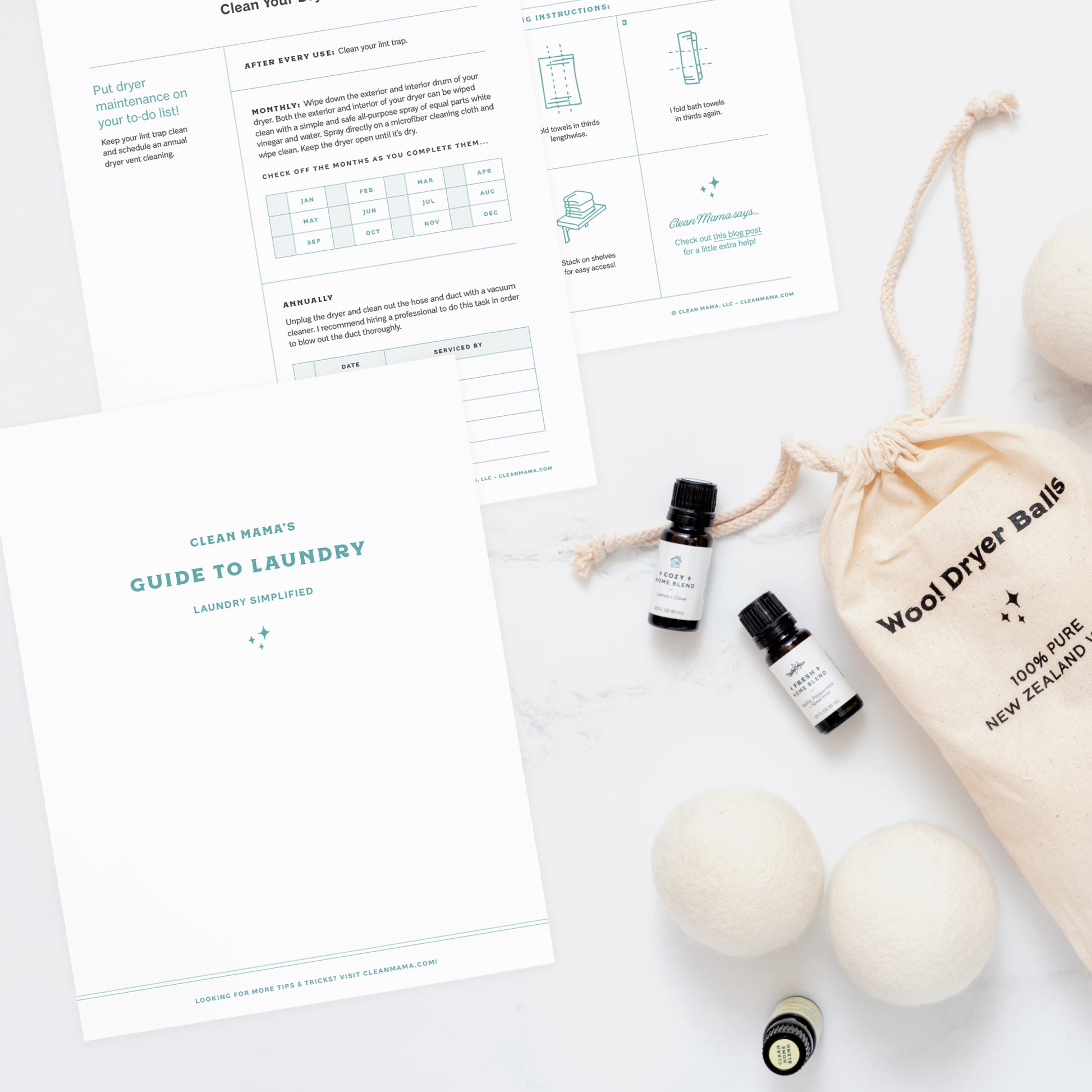 It doesn’t have to be difficult! Clean Mama’s Guide to Laundry is complete with how to clean and maintain your washer and dryer, how to fold just about everything (complete with hand-drawn illustrations) laundry symbol guide, finding your laundry system, and more!