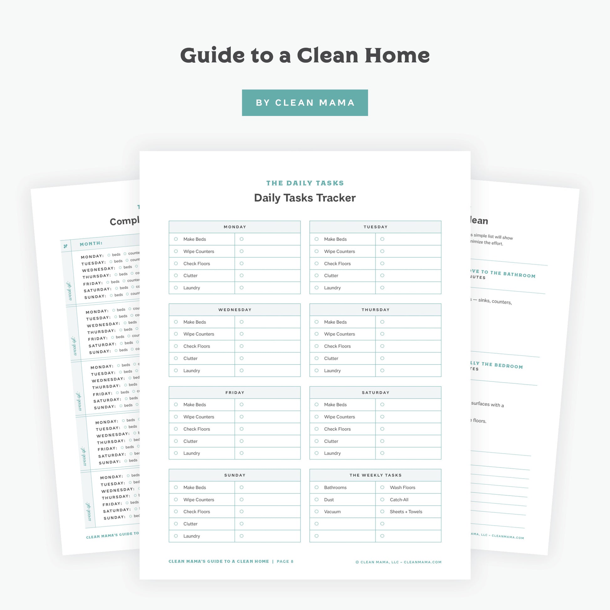 Clean Mama's Guide to a Clean Home includes a 52-page fillable + printable PDF document with the following pages: