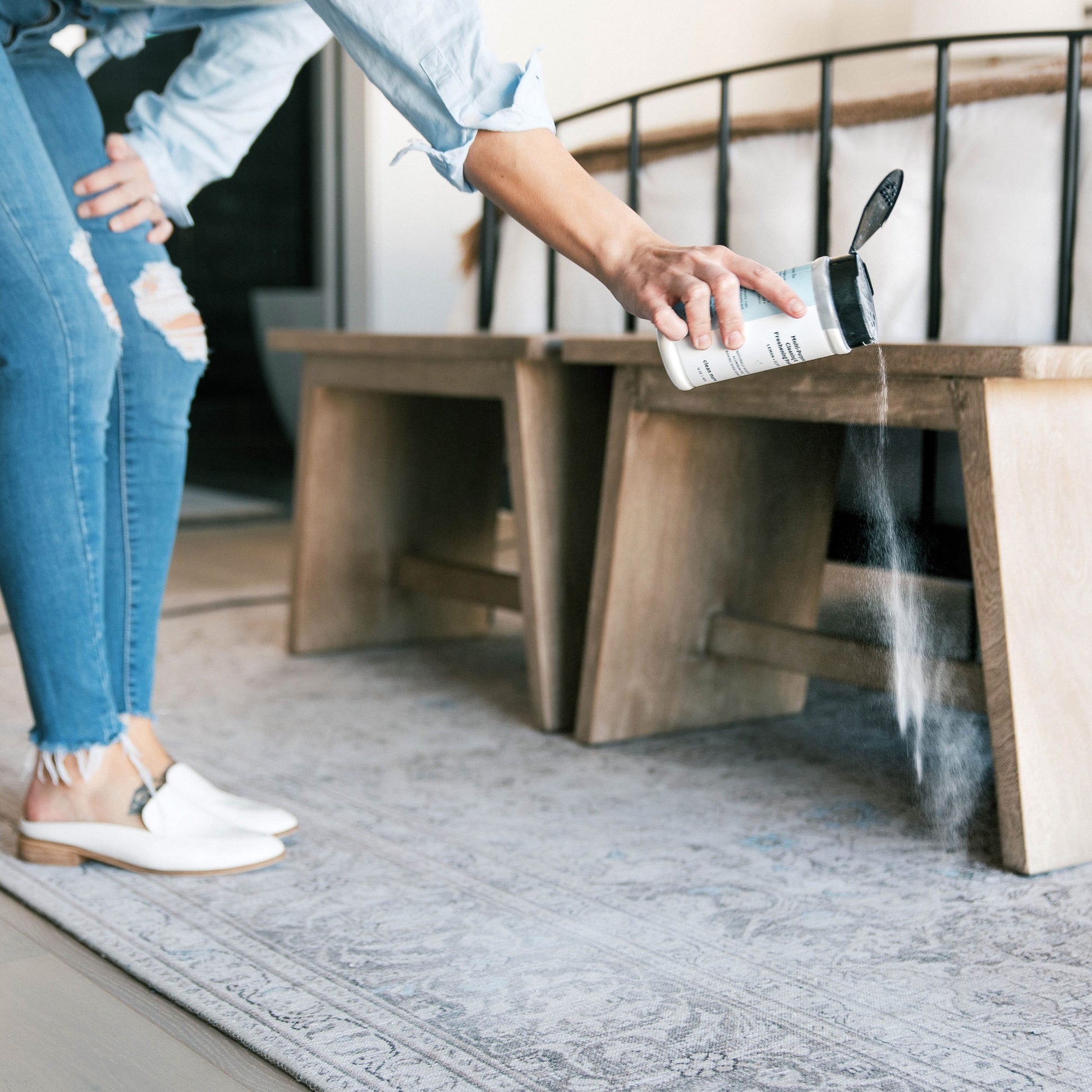 Mattress Freshener – Sprinkle lightly on mattress, let stand for 15 minutes and vacuum thoroughly. Leave bed unmade for an additional 30 minutes.